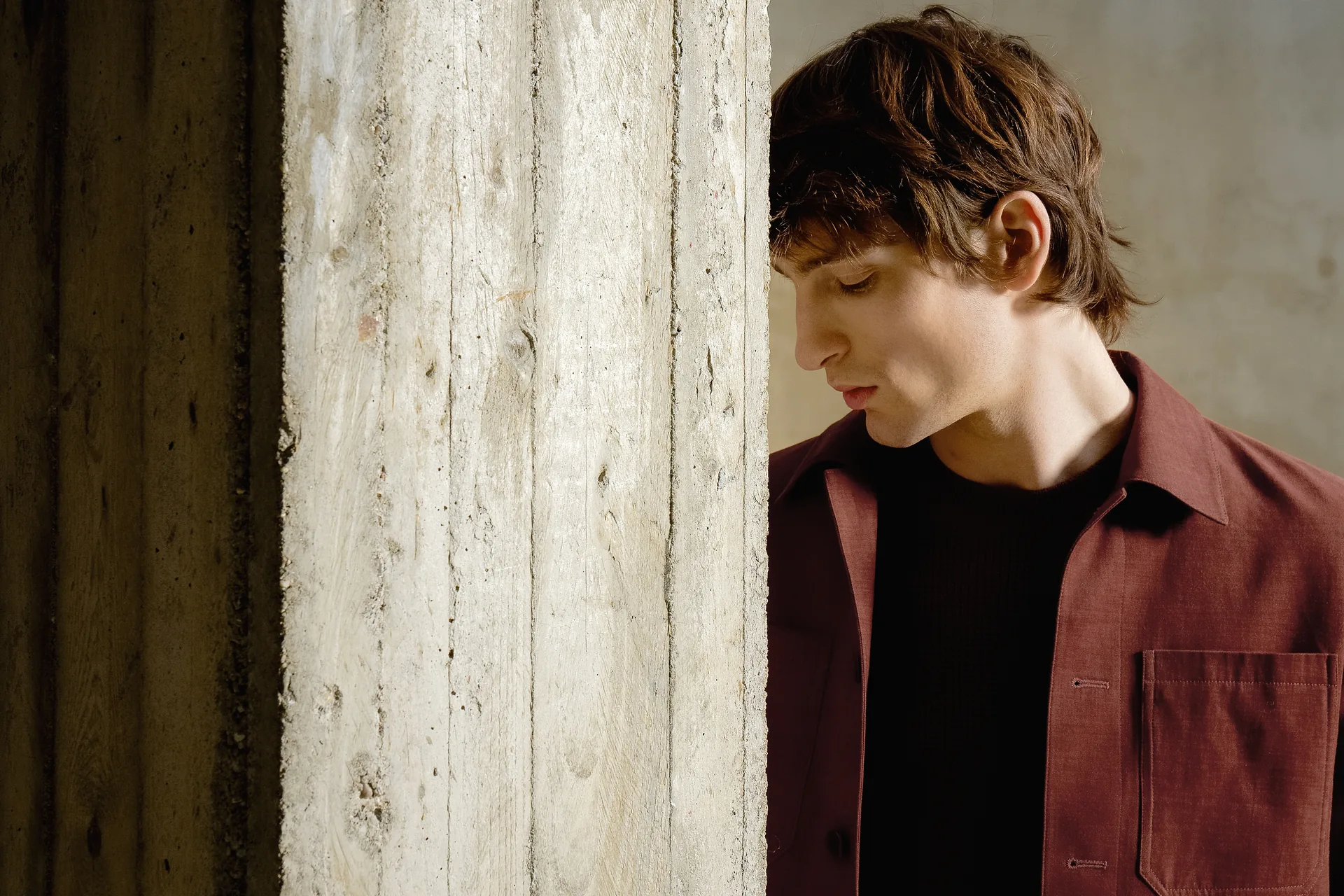 A small concrete enclosure, bare and austere, where narrow blades of daylight cut through the space. Columns, stairs, and shifting depths shape a restrained landscape, slightly dark and gently enclosed, yet charged with quiet intensity. Light from above traces sharp geometries across surfaces, turning shadow into a living element. Within this contained setting, the Afar collection unfolds as a dialogue between structure and movement. A minimal space becomes a stage for tension, energy, and stillness.