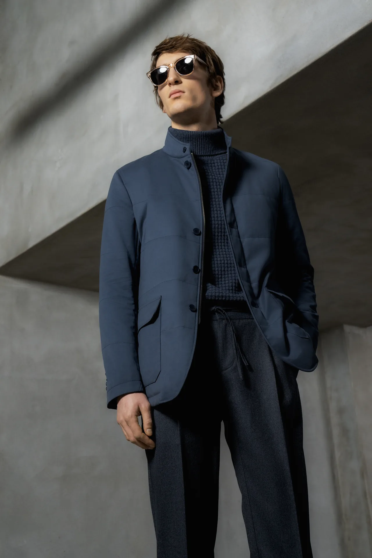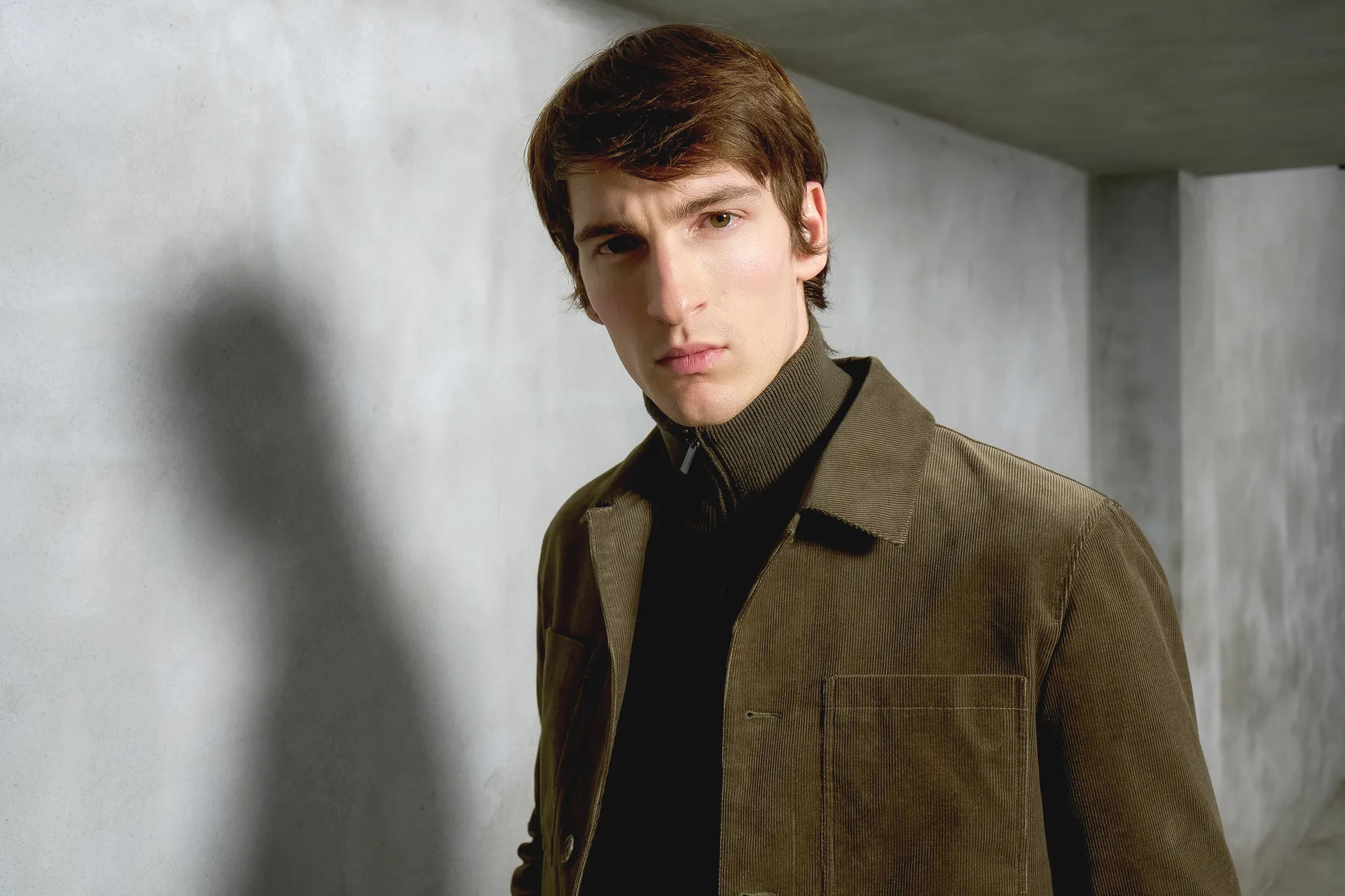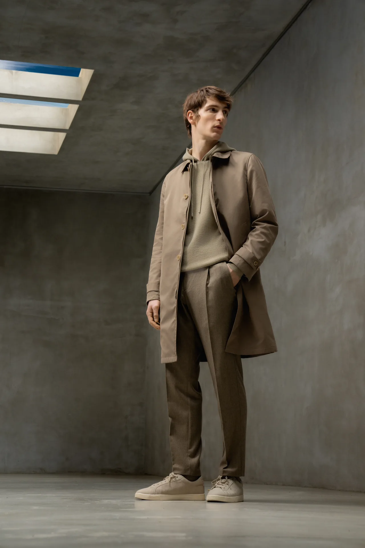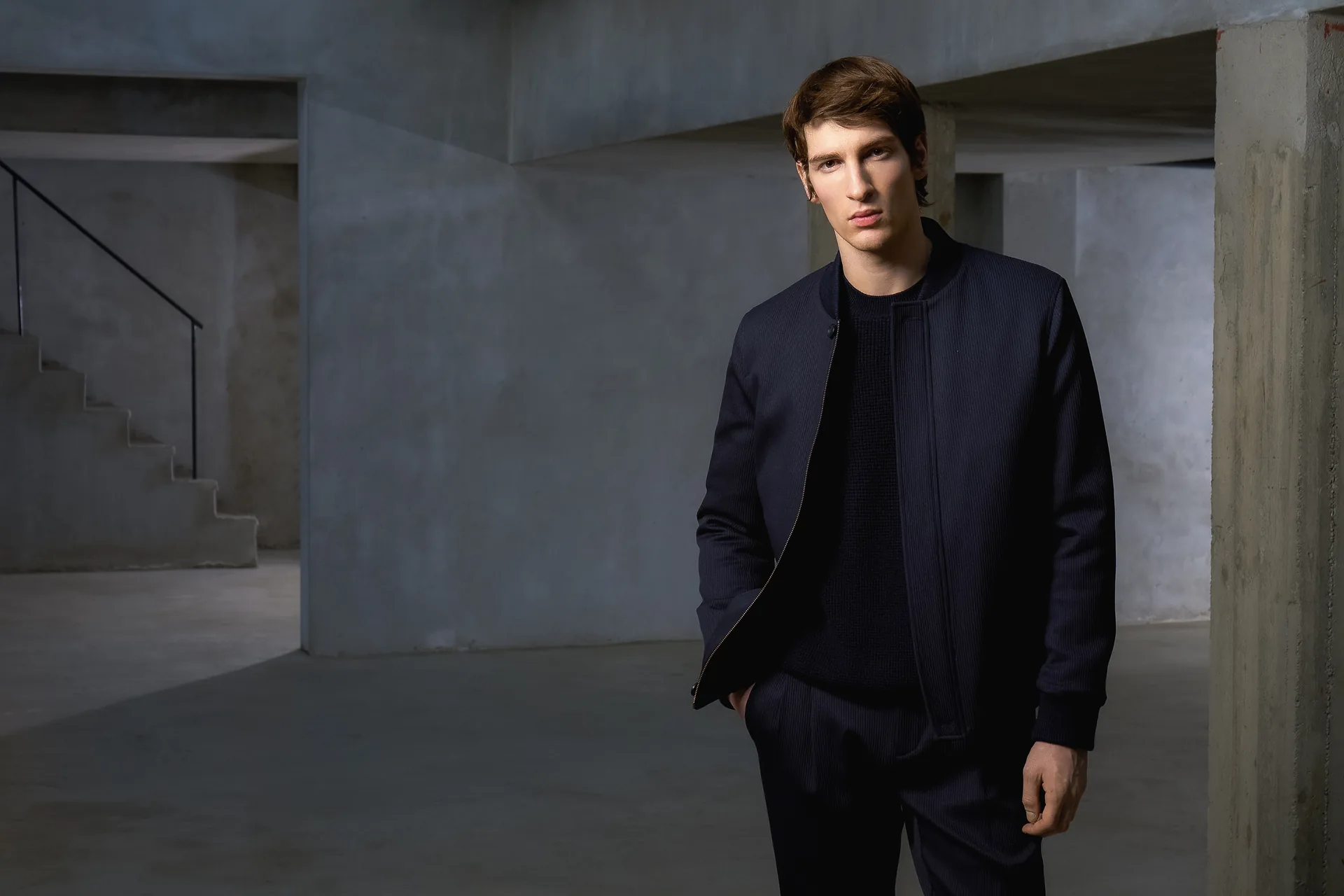 A small concrete enclosure, bare and austere, where narrow blades of daylight cut through the space. Columns, stairs, and shifting depths shape a restrained landscape, slightly dark and gently enclosed, yet charged with quiet intensity. Light from above traces sharp geometries across surfaces, turning shadow into a living element. Within this contained setting, the Afar collection unfolds as a dialogue between structure and movement. A minimal space becomes a stage for tension, energy, and stillness.