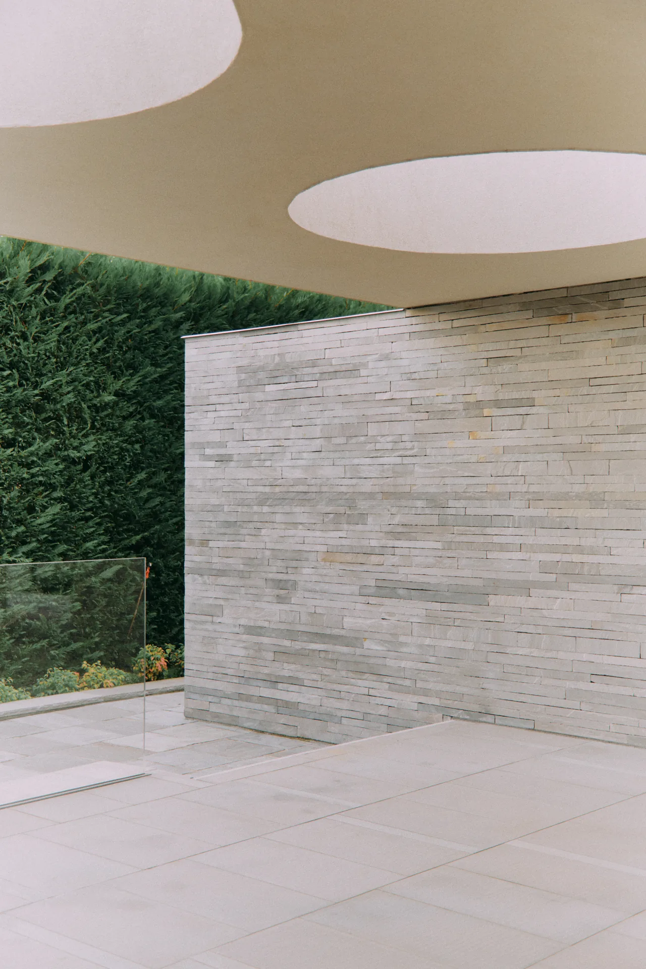 Late summer. A multi-level villa of almost modernist inspiration by the lake, where minimalist architecture meets open sky. Pale stone, clean lines, and a scenic swimming pool hold the atmosphere in a state of pause, a moment suspended between light and air.