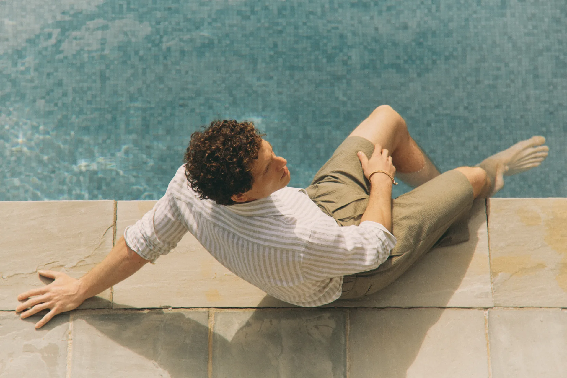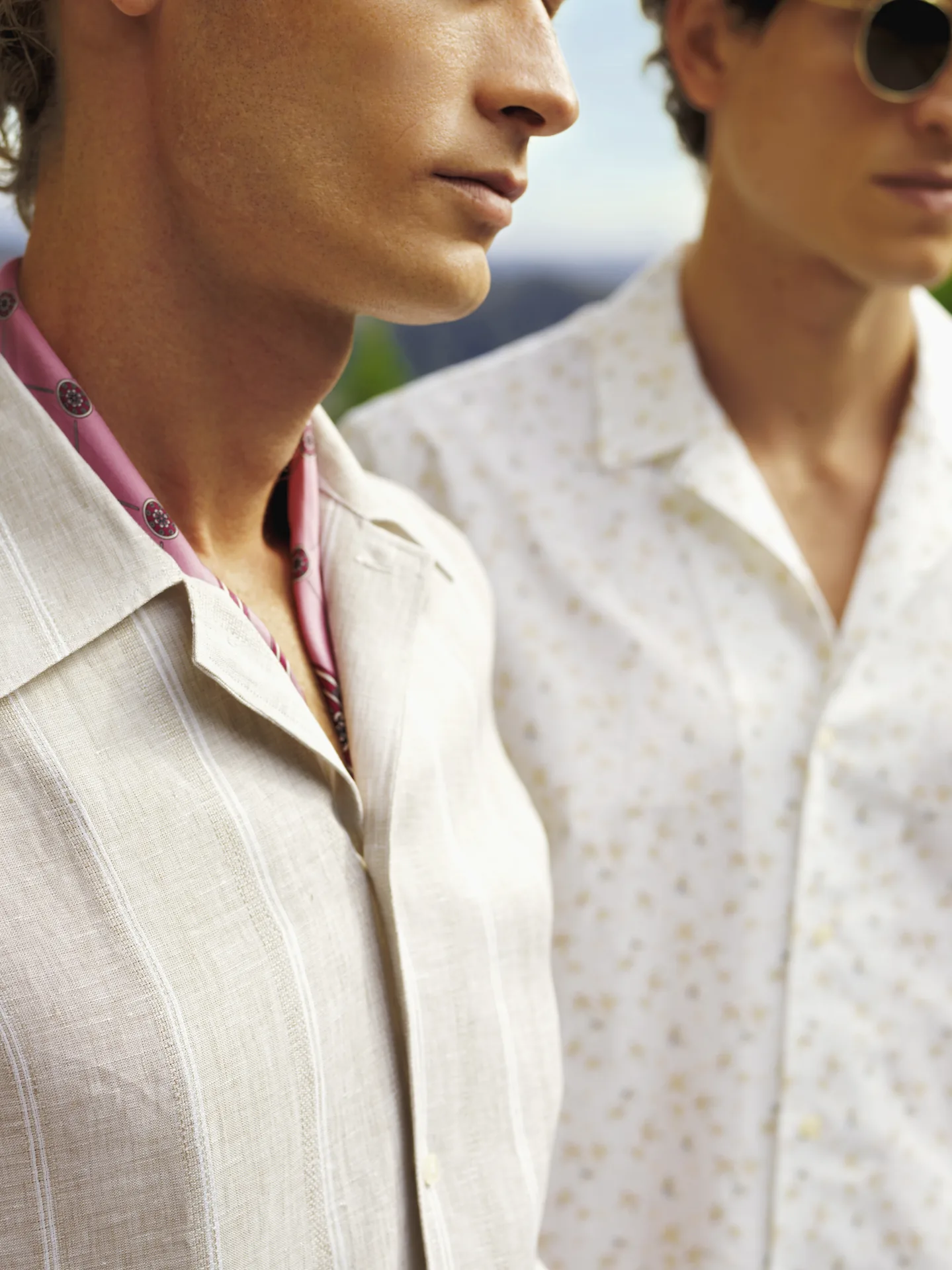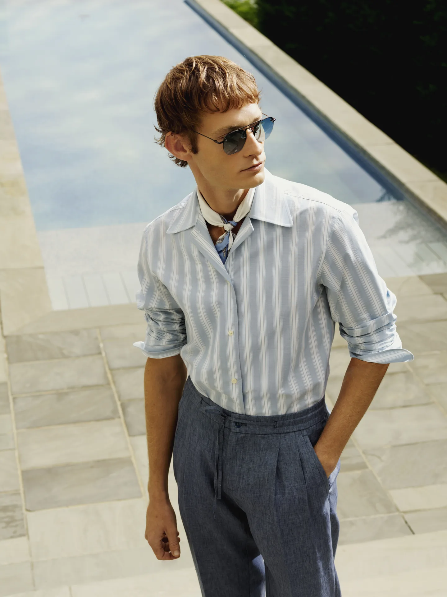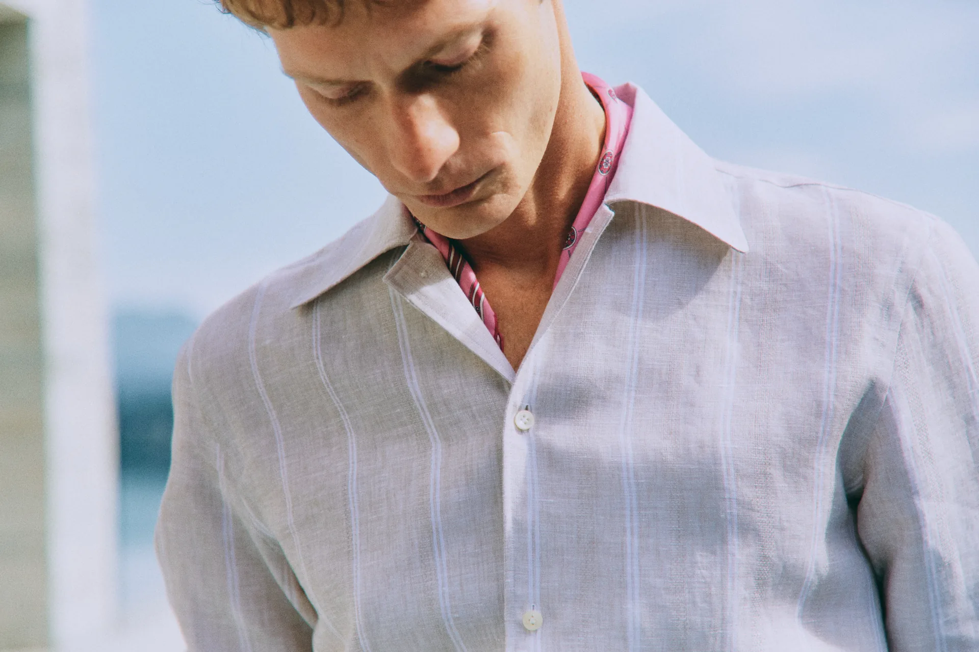 In this calm, the shirting collection emerges with effortless clarity. Lightweight fabrics, subtle stripes, and relaxed silhouettes.